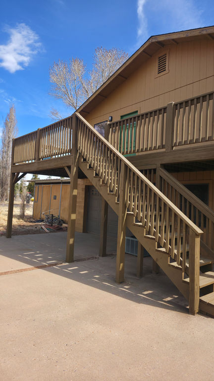 Rain Valley Road Deck Refresh - RCR completely revitalized this elevated deck in Doney Park, meticulously replacing deteriorating railings, rebuilding sturdy stairs, and installing fresh decking throughout. Our comprehensive approach enhanced both safety and aesthetics while maintaining the property's natural mountain character.